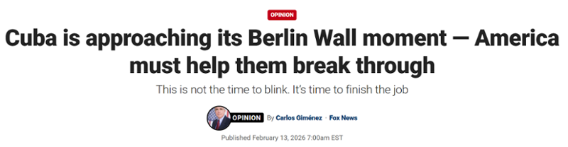 Miami, FL – Congressman Carlos Gimenez authored a major opinion piece in Fox News titled “Cuba Is Approaching Its Berlin Wall Moment — America Must Help Them Break Through.”